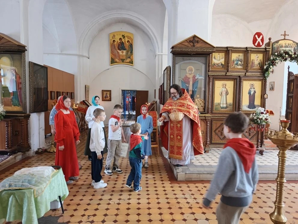 В храме Николы ратного на Праздник Пасхи провели мероприятия: дети воскресной школы, приняли участие в украшении храма, изготовили подарки и открытки к празднику Пасхи, которые передали солдатам на СВО.