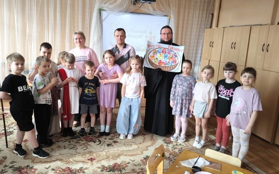 16 апреля настоятель Казанского храма д. Растовцы иерей Даниил Гутов посетил детский сад поселка Богатищево. Священник рассказал детям о празднике Пасхи, дети поделились своим опытом подготовки к этому празднику, получили сладкие подарки и сделали Пасхальную поделку в виде украшенного яйца.
